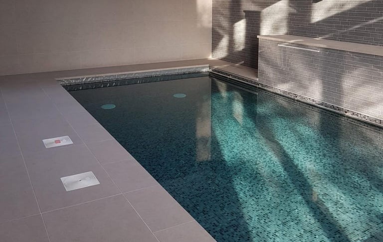 Wessex Services Group installed and commissioned the complete mechanical systems that integrate with this smart control platform, including underfloor heating zones throughout the property and the pool heating system. The intelligent controls allow precise temperature management whilst minimising energy waste, combining comfort with sustainability.