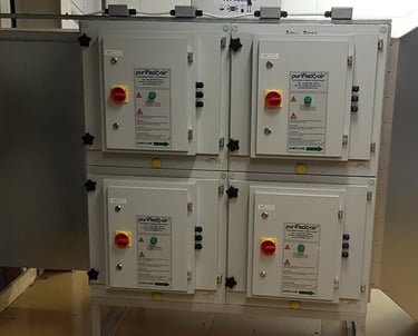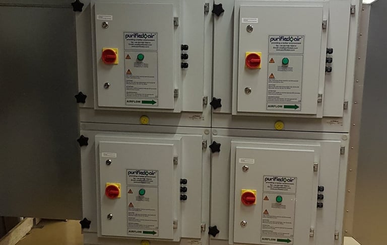 Our carbon filters work in conjunction with ESPs to provide comprehensive odour control, removing volatile organic compounds and cooking odours that escape the initial filtration stage. The modular bank configuration allows for easy filter replacement and maintenance access, whilst the robust housing ensures long-term durability in demanding commercial kitchen environments.