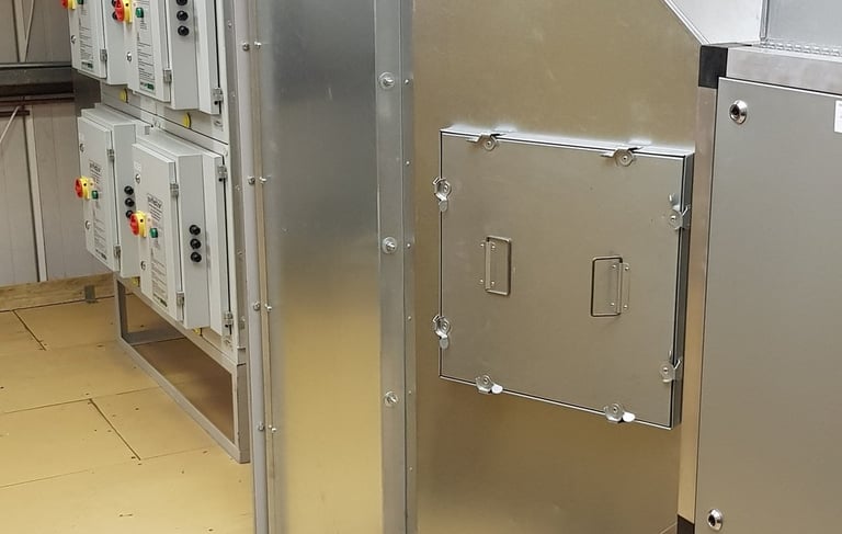 Each installation is tailored to the extraction system's airflow requirements and available space, ensuring optimal filtration performance and seamless integration with existing ductwork.