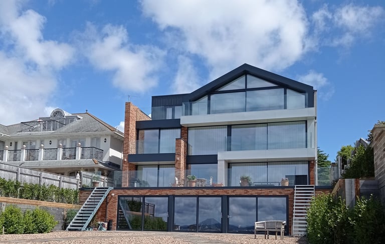 The rear elevation of the property show cases the architectural design properties of the red facing brickwork coupled with the dark grey zinc roofing profiles.